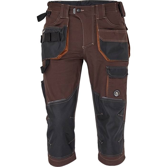 Pánské pracovní 3/4 kalhoty s pružným pasem; elastický inovativní materiál TRIFIBETEX®; odolné trojité prošití nohavic a sedu; Oxford 600D zesílení v oblasti kolen s možností vkládání kolenních výztuh; prostorné multifunkční přední kapsy s poutky na nářadí; reflexní prvky v barevném odstínu.