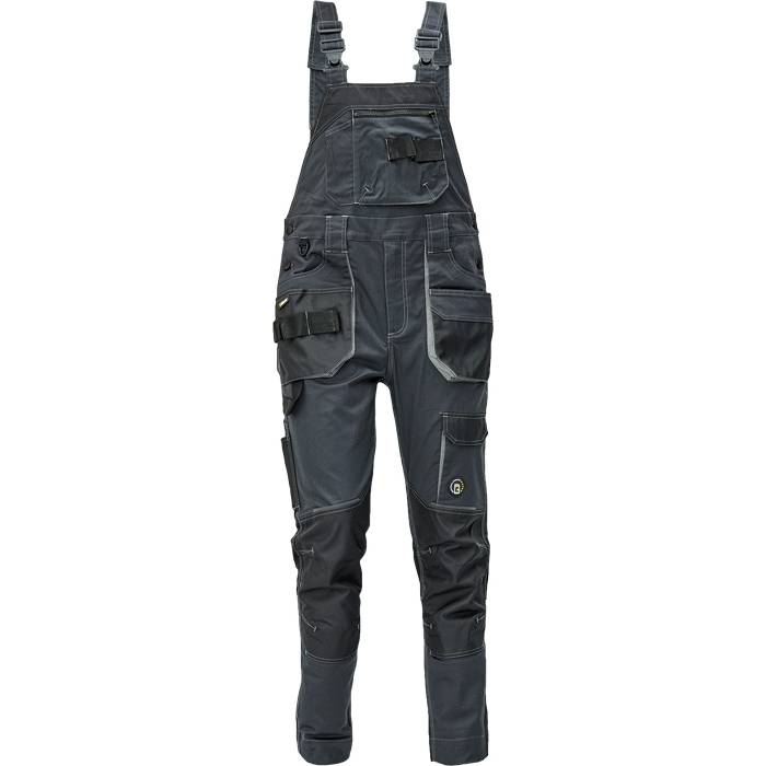 pánské pracovní kalhoty s laclem; elastický inovativní materiál TRIFIBETEX®; pružný pas, odolné trojité prošití nohavic a sedu; Oxford 600D zesílení v oblasti kolen s možností vkládání kolenních výztuh; prostorné multifunkční přední kapsy s poutky na nářadí; reflexní prvky v barevném odstínu; nastavitelná délka nohavic.