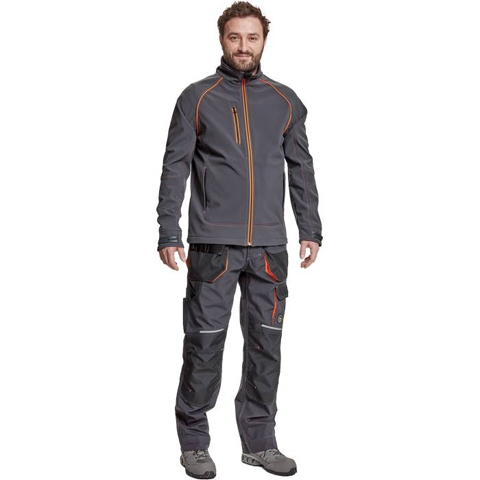 pánská softshellová bunda s membránou a vnitřním fleecovou vrstvou; zapínaní na zip; 1 náprsní kapsa, 2 boční kapsy na zip; 3 multifunkční vnitřní kapsy; nastavitelná šíře manžet rukávů pomocí suchého zipu; dekorativní prošití v kontrastní barvě.