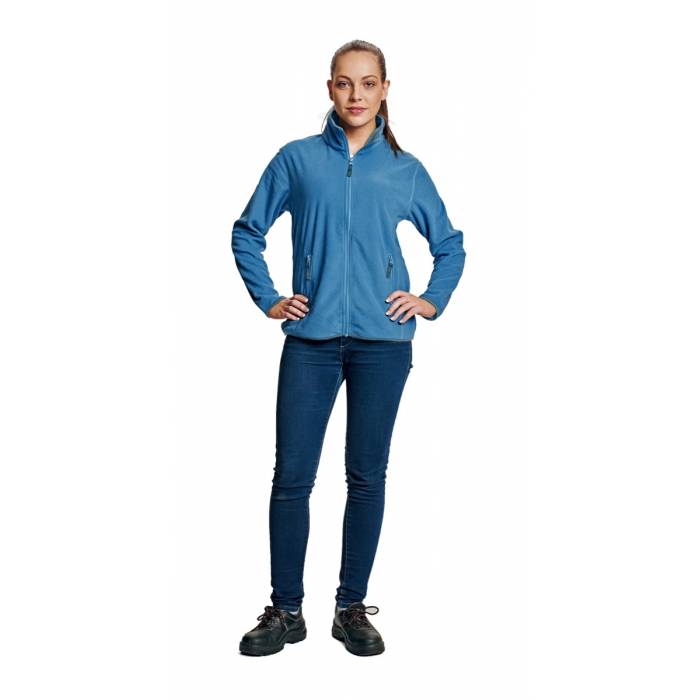 Dámská bunda z mikrofleecu se stojáčke; celopropínací na zip v barvě materiálu; 2 boční kapsy; přiléhavý střih, lehký a příjemný materiál.