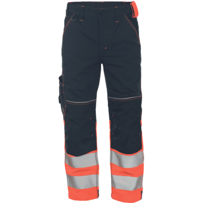 pánské pracovní kalhoty v kombinaci s HI-VIS spodní částí nohavic; dvojice tištěných 7,5 cm reflexních pruhů; elastický pas; 5 funkčních kapes; 600D Oxford zesílení v oblasti kolen s možností vkládání kolenních výztuh; dekorativní prošití v kontrastní HI-VIS barvě; nastavitelné délka nohavic.