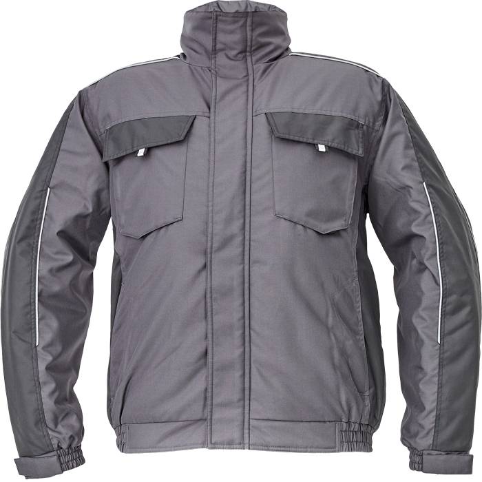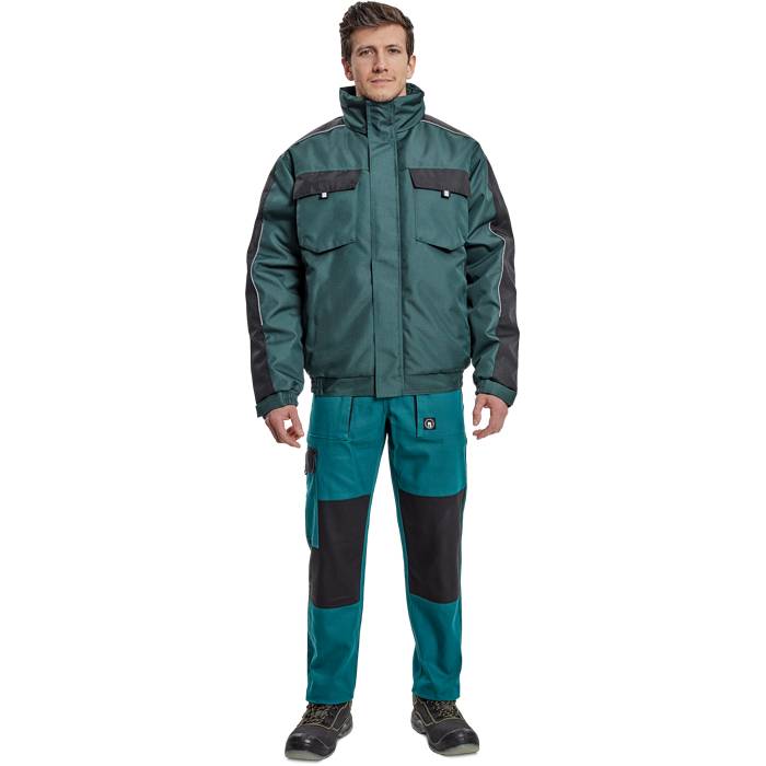 pánská zimní pilot bunda; pružný pas; zapínání na zip kryté légou na suchý zip; 2 boční kapsy, 2 náprsní kapsy na suchý zip; 1 vnitřní kapsa na mobilní telefon; elastické manžety rukávů se suchým zipem; reflexní prvky.