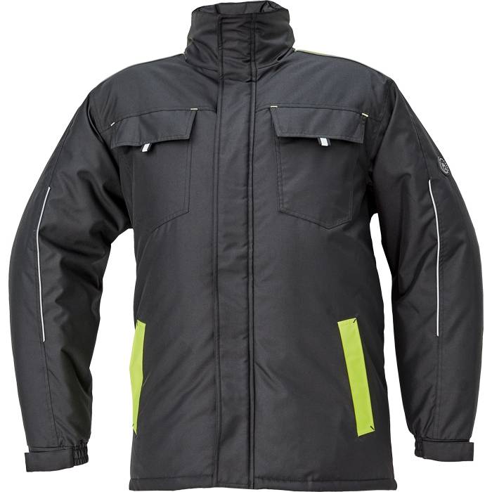pánská zimní bunda; zapínání na zip kryté légou na suchý zip; 2 boční kapsy, 2 náprsní kapsy na suchý zip; 1 vnitřní kapsa na mobilní telefon; elastické manžety rukávů se suchým zipem; reflexní prvky.