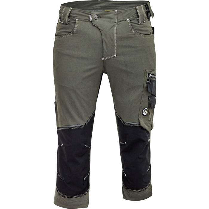 Pánské pracovní 3/4 kalhoty s pružným pasem; elastický inovativní materiál TRIFIBETEX PRO®; odolné trojité prošití nohavic a sedu, CORDURA zesílení v oblasti kolen; prostorné multifunkční přední kapsy s poutky na nářadí; reflexní prvky v barevném odstínu.