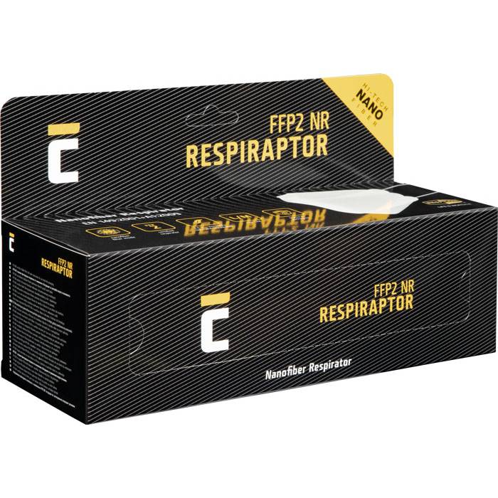 FFP2 NR RespiRaptor se může pochlubit filtrem z nanovláken, který má několik milionů pórů na jednom čtverečním cm. Zabraňuje vniknutí virů, bakterií, smogu a prachu do dýchacích cest. RespiRaptor je respirátor, který je schopný blokovat škodlivé látky použitím vysoce efektivního nanofiltračního materiálu. Vynikající prodyšnost - navzdory vysoké hustotě nanovlákna je membrána propustná pro vzduch a vodu, což zvyšuje komfrot a umožňuje snadné dýchání. Snadné a pohodlné mluvení. Pro lepší přizpůsobení využijte plastovou sponu na sepnutí gumiček za hlavou, která je součástí balení. Dostupné ve velikosti M/L a dvou baleních (3 kusy a 25 kusů).