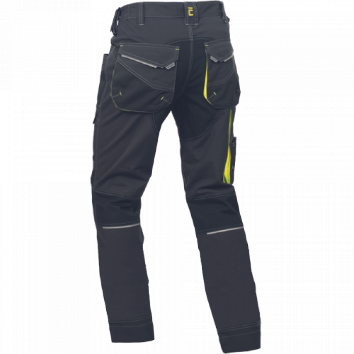 pánské pracovní kalhoty s pružným pasem a multifunkčními kapsami; Oxford 600D zesílení kolenních kapes pro vkládání ochranných nákoleníků; odolné trojité prošití nohavic a sedu; reflexní prvky; nastavitelná délka nohavic.