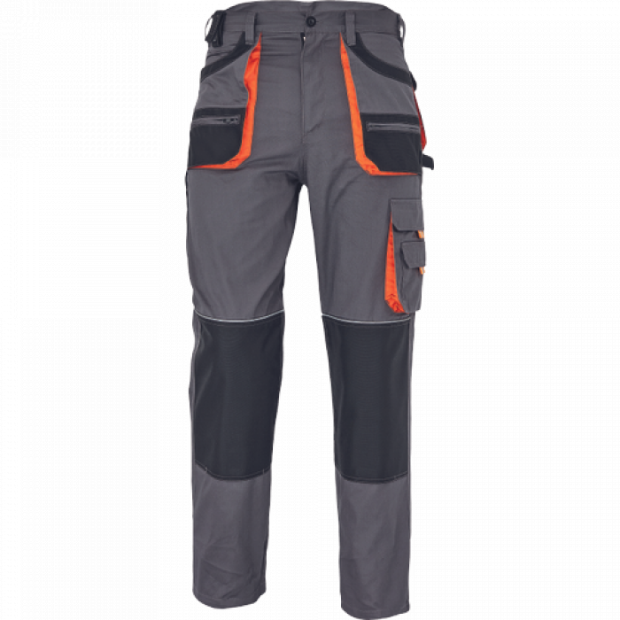 pánské bavlněné pracovní kalhoty; 6 funkčních kapes; polyester Oxford zesílení v kolenních částech s možností vkládání ochranných nákoleníků; nastavitelná délka nohavic.