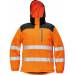 zateplená zimní HI-VIS bunda s odnímatelnou kapucí a TPU membránou; prodloužený zadní díl; zesílená část v oblasti ramen; 1 náprsní kapsa na zip v kontrastní barvě; 2 postranní lištové kapsy, 2 uzavíratelné vnitřní kapsy; nastavitelná šíře spodního obvodu; reflexní paspulka lemující sedlo a boční kapsy; dekorativní prošití; možnost strojového vyšívání.