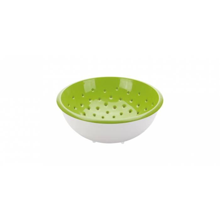 Vynikající pro oplachování ovoce a zeleniny pod tekoucí vodou a pro jejich podávání, zbylá voda z opláchnutých potravin odkape do mísy. Obě nádoby lze používat samostatně, mísu pro přípravu a podávání salátů nebo servírování ovoce, cedník k cezení uvařených těstovin, brambor apod. Vyrobeno z prvotřídního odolného plastu, vhodné do ledničky a do myčky. 3 roky záruka.